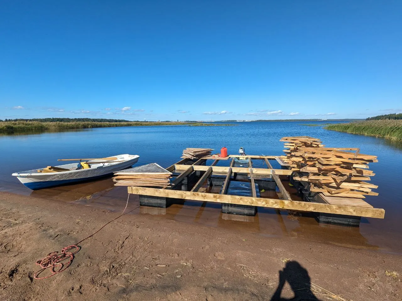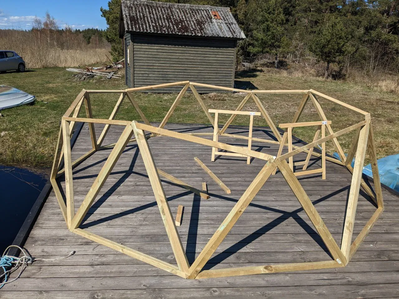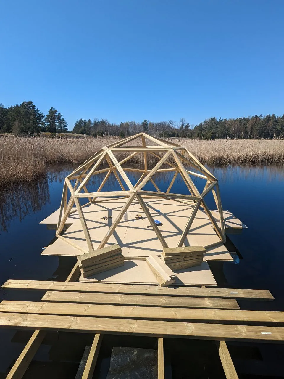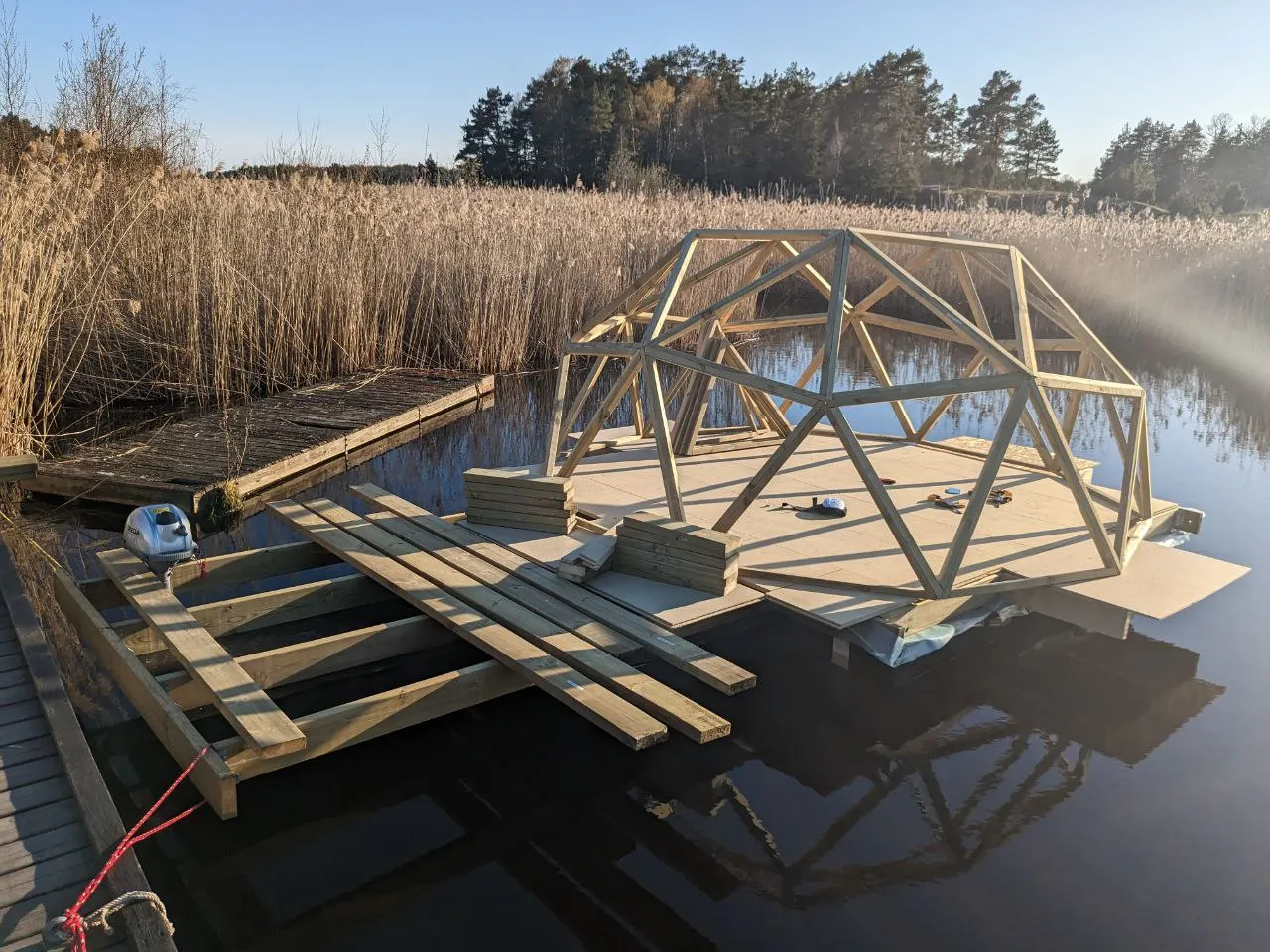 The fix took me a week. I had to disassemble everything and re-do the floating deck. I kept it simple and went for a 4,5m by 4,5m deck that would be large enough to hold the geodesic dome while allowing me to go around it or lounge in the sun.