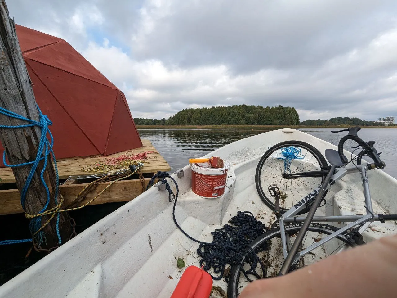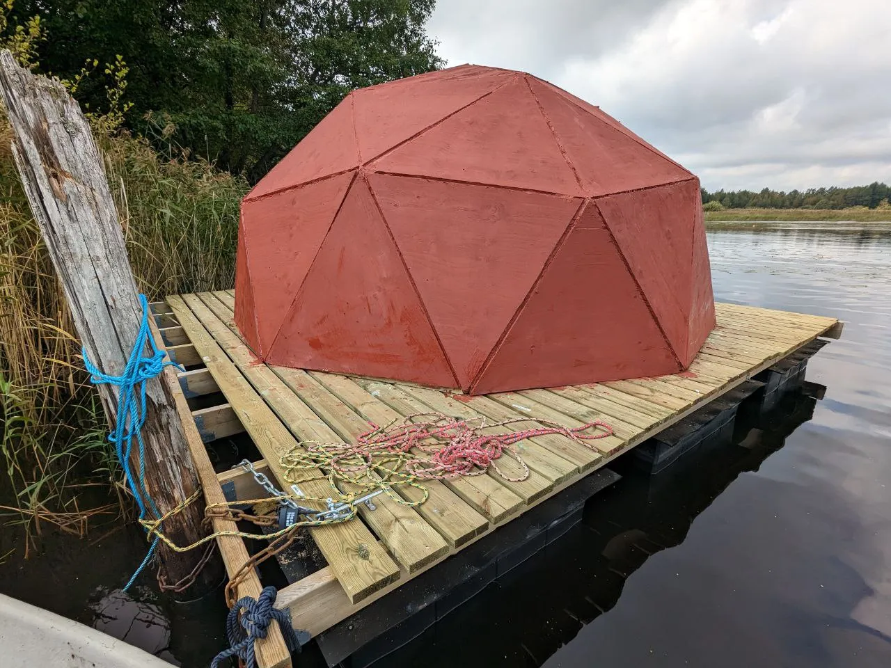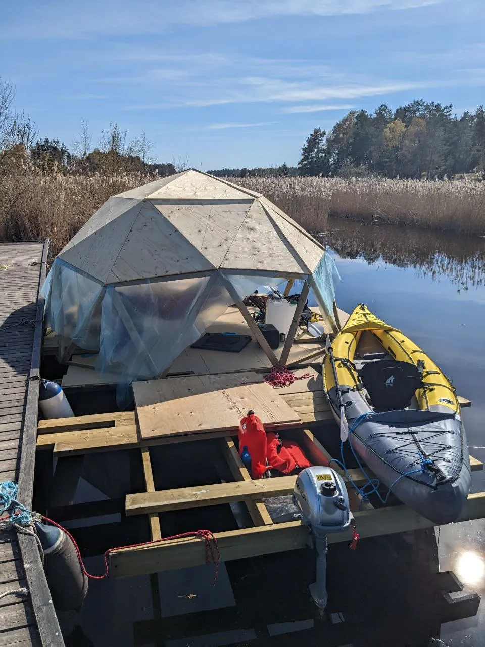After sailing for 70km over another 3 weeks, a part of the floating deck holding the geodesic dome broke down because of bad weight distribution. I needed to fix it before moving on.