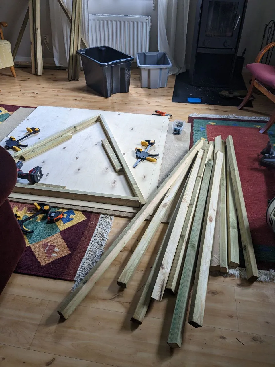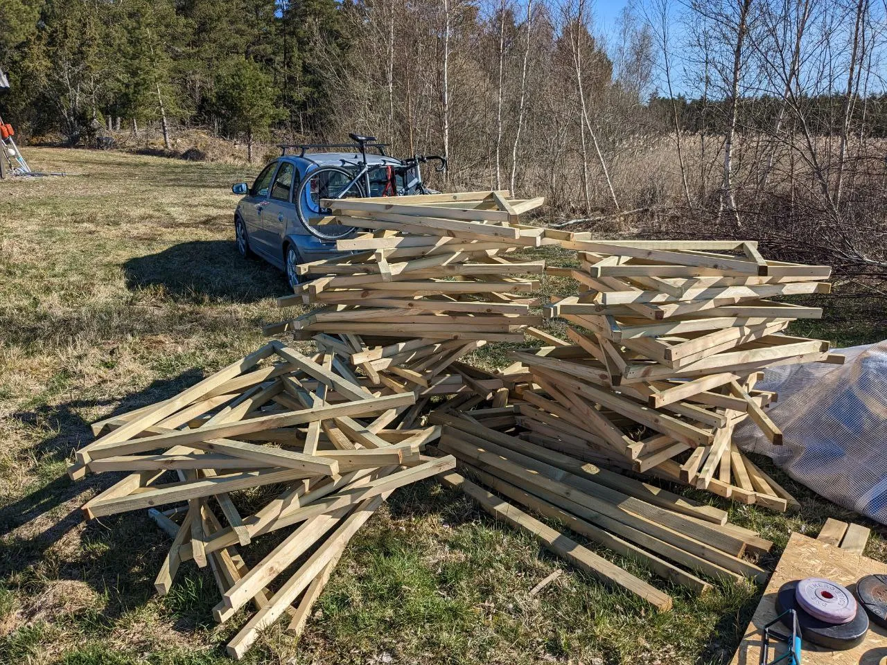 Then, I bought and transported the wood using my old Opel Corsa and a roof rack.